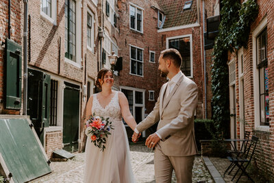 Trouwen in het stadhuis van Middelburg is als trouwen in een stukje geschiedenis. Dit prachtige, gotische gebouw uit de 15e eeuw ligt midden op de Markt en is zonder twijfel één van de mooiste stadhuizen van Nederland. De imposante gevel, hoge ramen en sfeervolle trouwzaal zorgen voor een romantische en koninklijke setting. Binnen ademt alles stijl en karakter — perfect voor wie houdt van klassieke elegantie. Als trouwfotograaf geniet ik hier van het zachte licht dat door de oude ramen valt en de authentieke details die elke foto een verhaal geven.